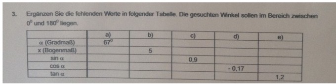 Sin Cos Tabelle Bogenmaß